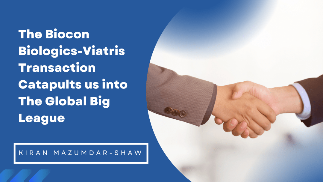Kiran Mazumdar-Shaw: Thanks Nisha, and as you know it has always been our aspiration to be a world leading, global biosimilars company. And I think this transaction catapults us into the global big league. As you know, this was a deal that we were able to strike with Viatris, who have been our partners for over a decade. So, it enables us to seamlessly move from our current partnership model into a fully integrated standalone biosimilar biologics enterprise. And I think this is a huge inflection point for us as a company, and this is a huge inflection point for our biosimilars business.
